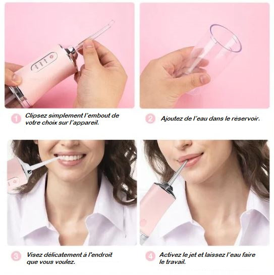 Jet dentaire portable rechargeable par USB avec 4 embouts offerts